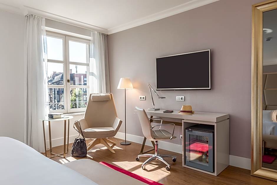 This room comes equipped with a flat-screen TV, air-conditioning, digital safe and mini-bar. It offers tea/cofee making facilites and a Nespresso coffee machine. It overlooks the Sablon Square.